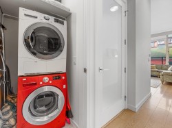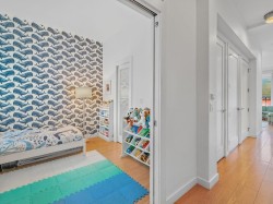 Compass in Olympic Village. The Condo - Great layout with bedroom and walk-in closet with custom organizers. The kitchen has been updated with high gloss cabinetry and butcher block countertop, Meile appliances, gas cooktop, and wall oven. Contemporary laminate flooring, nearly 10 foot ceilings, and a private outlook toward Craft Brewing (The historic Vancouver Salt Co). Peak at the water from the spacious patio. The Location - steps to the seawall, shops, theatres, coffee, and some of Vancouver's best seaside dining. The Building - leed certified, with open breezeways, radiant heating and cooling, and access to the world class amenities at The Gold Club for swimming, whirlpool, sauna, and a fully equipped fitness centre. Pets OK, secure parking (including for visitors) and storage locker.