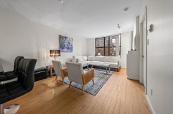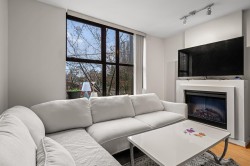 1 bed, 1 bath, 576 sq ft condo on the 3rd floor in an incredibly convenient location! Steps to so many amenities - seawall, skytrain, Rogers Arena, Costco, parks, cafes, restaurants, night life & retail. Easy access onto Cambie St bridge. Open floor plan includes spacious kitchen with updated gas stove, electric fireplace in living room & ample space for a dining table. Updated laminate floors. Insuite laundry, 7'6 x 3'10 storage room plus a storage locker. Bedroom includes efficient storage options & ensuite bathroom. 1 parking stall and visitor parking. The building has a great gym, hot tub, sauna/steam room, guest suite, bike room, party room w/ kitchen & parcel delivery boxes. Dogs & cats are allowed.