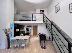 INCREDIBLE 2 LEVEL LOFT in the heart of Vancouver at "The Spot" with soaring ceilings and floor to ceiling windows. Walk to the best of restaurants, entertainment, shopping, theaters, library, skytrain, Yaletown and BC Place - walk score 100. Spacious living room with a bright solarium perfect for a home office. Movable island in the kitchen allows for lots of layout options. The building has a huge roof top deck to enjoy 360 degree views of Vancouver downtown, soak in the sun or watch the fireworks. A deck with a picnic area and barbecue, party room and gym on the second floor. Pet and Rental friendly building with an on-site caretaker- great for first time buyers and investors too. Short term rental allowed.