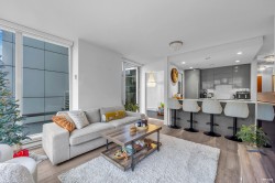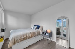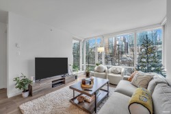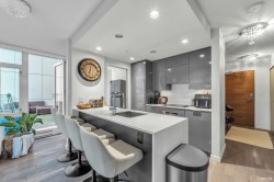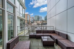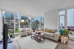 Welcome to COSMOS by Concord Pacific – a modern, smartly designed 2 bed, 2 bath + den + solarium in the heart of downtown Vancouver. This bright corner home features quartz counters, sleek cabinetry, in-suite laundry and floor-to-ceiling windows that flood the space with natural light. A rare highlight is nearly 200 sqft of patio connecting the primary bedroom and living room, plus a large balcony off the second bedroom for morning coffee or evening drinks. Enjoy resort-style amenities: 24/7 concierge, rooftop lounge with hot tub & BBQ, bowling alley, fitness centre, pool, sauna & steam. Unbeatable location steps to BC Place, Rogers Arena, Gastown, restaurants, shops & SkyTrain – perfect for urban professionals and investors alike.