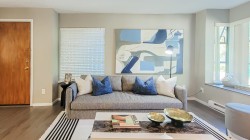 Laurel West - This nicely updated 1170 sf, 2 bed, 2.5 bath, 2 patio townhome in Fairview, located close to everywhere you want to be. Main-level alcove windows, both east & west, add to the home's comfort. An HE gas fireplace insert keeps winter heating low. Reverse layout has 2 large bedrooms down each with its own patio & private, ensuite bathroom. 1 underground parking and 1 storage locker. Open House August 16, 2pm ~ 4pm. https://www.youtube.com/watch?v=CXyyRnHponQ
