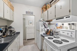 Very generously sized 1 bedroom home (691 sqft) with 8'8' extra high ceilings, large south balcony & bright private outlook with lots of greenery and trees. Large bedroom, spacious living & dining area to entertain your friends & family. Well looked after strata with extensive building upgrades; new windows & glass sliders 2015, roof 2013, plumbing 2008, elevator 2005, balconies & patios 2018-2023, boilers 2024, partial parkade membrane 2010, & more. Suite is mostly in original condition & comfortable as is but priced for huge upside potential with some easy improvements. An opportunity to make it yours! Super central West End location, steps to Denman, Davie, Robson St., English Bay & Stanley Park. 2 pets ok. Parking & locker included. View by appointment Tues & Thurs. 3-5:30 or Sun 1 pm.