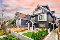 Welcome to Smart house fully automation duplex Commercial drive, This brand-new 4 bedroom and 3.5 bathroom Front duplex boasts an open-concept main floor with the gourmet kitchen, ensuite laundry, formal dining area and the eclipse door leading to the backyard. Enjoy relaxing or entertainment in the private front yard, and take advantage, Comes with 10 feet ceiling on the main floor. Located in a quiet neighborhood close to schools, parks, public transportation etc. Don’t miss your chance to own this charming duplex in Victoria Vancouver East — schedule your private showing today! Open House Sat 2Pm to 4 PM