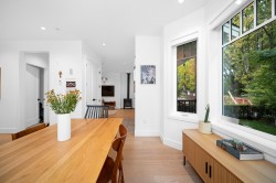 Light-filled duplex that feels like a house — spacious 1,370 sq ft, 2-bedroom, 3-bath home with a huge private, fully fenced yard. Built in 2021 and still under the remainder of the new-home warranty, this residence blends modern finishes with comfortable living: vaulted ceilings, open-plan living and dining, and a designer kitchen outfitted with high-end appliances. Luxurious touches include radiant heated floors, central air conditioning, and thoughtful layout that maximizes privacy and indoor-outdoor flow. Ideal for buyers who want the ease of a duplex with the scale and yard of a single-family home.