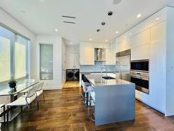 Beautiful 1st owner elegant home located in prestigious Dunbar neighborhood. This modern house offers exceptional quality, practical layout & luxurious finish. Main floor has living/family rooms both w/gas fireplace, dining room, office, guest powder, eating area, gorgeous main/wok kitchens both equipped with Miele & Wolf appliances. Great front porch, large back deck for all your summer outdoor entertainments. Top floor has 4 bdrms and 3 full bathrooms, two are ensuite. Basement complete with home theatre, sauna/steam, kitchen, 2 bdrms can be guest, gym or a mortgage helper, with independent entrance & enclosed foyer. Radiant heating w/AC, HRV, ceiling speakers, CCTV system. Triple garage. Top schools: Lord Kitchener Elem, Lord Byng Second, St Georges, Crofton & UBC.