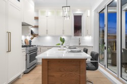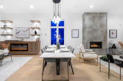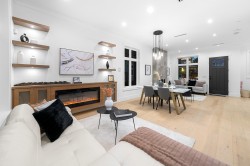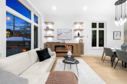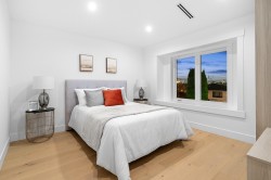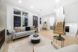 Welcome to this brand-new luxury home in central East Vancouver, offering 2,366 sq. ft. of beautifully designed living space. With 5 spacious bedrooms, 4.5 modern bathrooms, and a flexible room, this home also features a 2-bedroom legal suite with a private entrance—perfect for rental income or extended family. The open-concept main floor boasts custom cabinetry, hardwood flooring, radiant heating, air conditioning, and a gourmet kitchen. Upstairs, the primary suite is complemented by two more bedrooms. The lower level includes a rec room with a bar, perfect for entertaining. Enjoy a double-car garage, stunning landscaping, elegant wood detailing, and a fully fenced yard. Conveniently located near schools, parks, transit, and shopping.