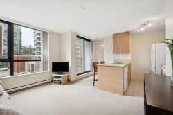 FABULOUS original owner 1 BEDROOM at Yaletown Park 3! Beautifully designed efficient layout with expansive windows & open concept living area. The gourmet kitchen offers full-size appliances, stone counters & bar seating, while the covered balcony is perfect for year-round BBQs & morning coffee. Wake to soft natural light from TWO windows in the spacious bedroom, then unwind in the spa-inspired bath at day’s end. In-suite laundry, 1 parking & 1 locker checks all the boxes. Amenities include concierge, gym & lounge. PRIME YALETOWN location — steps to trendy dining & shopping on Hamilton & Mainland, Costco, Rogers Arena, BC Place, theatres, False Creek Seawall, parks & SkyTrain. 100 Walk Score — ideal INVESTMENT or FIRST HOME.