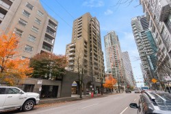 WARNING! EXTREME VALUE in this UPDATED (new S/S Appliances, lights + floors) 1bd at this RAINSCREENED building at the intersection of Yaletown, Downtown + West End. Step inside this corner unit + you’ll be impressed by this bright + functional condo that features ample interior storage + massive covered balcony (130 sf) ideal for hanging with friends or chilling with your morning coffee. Perfect for young professionals or an addition to your rental portfolio! BUILDING Trouble-free building with many updates including plumbing, balconies, windows, elevators, full rainscreen + more. Insuite storage + parking (rented $70/mo). Sorry, no pets. NEIGHBORHOOD: Highly walkable + bike friendly, steps to Yaletown + Skytrain, Beach District, seawall + all Downtown Vancouver has to offer at your door.
