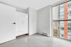 A fantastic opportunity to own a fully renovated, 2-bdrm plus den corner suite at Savoy, offering an ideal blend of style, comfort, and urban convenience. This move-in-ready residence features a spacious open layout with a refreshed kitchen, and SS appliances, flowing seamlessly into the living and dining areas-perfect for everyday living. Large windows throughout bring in abundant natural light and showcase pleasant city and garden views. The versatile den is ideal for a home office, while the private patio provides a great space to relax. Enjoy full amenities including indoor pool, hot tub, gym, and party room. Includes 1 parking stall & 1 storage locker. Located just steps to transit, shopping, dining, and all downtown conveniences-an excellent choice for first-time buyers or investors.