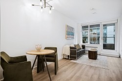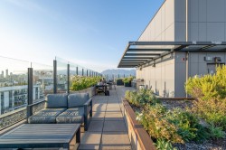 Welcome to ELLSWORTH! Efficiently designed 1 bed + den, 1 bath home offering 570 sq ft of well-planned living space in a LEED-certified concrete building is a show stopper! LOCATED ON THE QUIET SIDE OF THE BUILDING features include integrated appliances, quartz countertops, marble accents, a walk-in closet, convenient side-by-side laundry & a 36 sq ft patio. Versatile den perfect for a home office or extra storage (ALSO A STORAGE LOCKER). Exceptional building amenities include a rooftop terrace with panoramic city views, outdoor BBQ with fire pit lounge & a kids’ play area. Located in the heart of Mount Pleasant with a Walk Score of 100, breweries, cafés, restaurants, shops & transit are right outside your door. This is urban living at its best!
