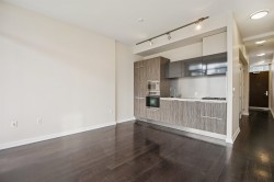 Welcome to Compass, where modern design meets vibrant waterfront living. This sleek 1 BED & FLEX home offers a smart urban layout with a stylish Eggersman kitchen featuring premium Miele stainless steel appls & gas cooking. The versatile FLEX space is ideal for storage or home office, while the spa-inspired 5-piece bath & radiant heating/cooling elevate everyday comfort. Enjoy your EAST facing BALCONY with lively plaza views, sparkling water & mountain backdrops. Unmatched amenities include a lush rooftop garden terrace with 360° city & water views PLUS access to the Gold Medal Club gym, yoga studio, indoor pool, hot tub & sauna. Steps to the Seawall, shops, cafes, Skytrains, Aquabus & more. 1 parking. Perfect starter home, investment, or chic pied-à-terre. Some photos virtually staged