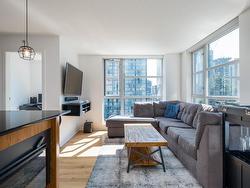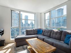Central Location in DT! An incredible opportunity to have this fabulous 1 bedroom corner suit. This rare rarely functional, beautiful and stylish condo offers huge floor to ceiling windows, Den/Sunroom, balcony, in-suite storage, granite counter tops, good brand appliances. This south west facing corner unit has plenty of natural lights and also have Emery Barnes Park view. Great Amenities include: outdoor pool & swirl pool, gym, steam&dry sauna, theatre, meeting & party rooms, 2 guest suites, 3 elevators and 24hours concierge/security. Close to shopping, restaurants, cafes, parks, skytrain, gastown/ coal harbour, swawall. A must see!