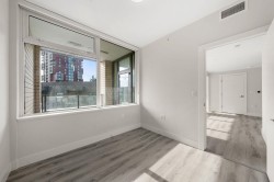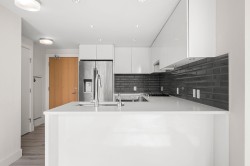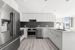 Stunning and modern 2-bedroom unit in a concrete mid-rise building located in the heart of the vibrant River District.This like-new, well-designed home features laminate flooring, forced air heating and cooling, gas stove, Next smart thermostats, quartz countertops, silver appliances, and a thoughtfully laid-out kitchen.Enjoy a spacious covered balcony perfect for year-round use.The building offers an unmatched list of amenities including an indoor pool, hot tub, sauna, steam room, large gym, music room, tennis courts, clubhouse, children’s playground, activity room, dance studio, study room, 2 guest suites, party room, and community gardens.Located steps from Save-On-Foods, restaurants, cafes, banks, daycare, schools, and transit.A must-see home in an exceptional master-planned community!