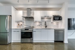 Stunning fully renovated loft style 925 sqft with a 91 sqft patio, view this 2 bedroom 2 bathroom condo at this luxurious property called V6A. Move into this trendy & diverse neighbourhood. Sleek modern renovation in 2023, features include, white cabinetry, sleek black hardware, marble countertops, white carrara marble blacksplash, SS full sized appliances, motorized blinds throughout, sleek open-concept design, polished concrete floor. It also has a 71 inch bath tub in the master ensuite, dimmer switches & more. V6a has a concierge service, fully equipped fitness centre with state-of-the-art cardio equipment & free weights.