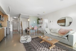 Attention Investors and St. Paul’s Employees! Discover this stunning and cozy 2-bedroom, 2-bath condo just a 7-minute walk from the new St. Paul’s Hospital, set to be fully operational in early 2027. Located in the heart of revitalized Chinatown, this gem features concrete floors, expansive south-facing windows, and a sunny covered deck. The primary bedroom boasts a walk-through closet and a 4-piece en-suite. The versatile second bedroom includes opaque glass doors, perfect as a den or workspace, and easily convertible to a guest bedroom. Enjoy a contemporary kitchen, in-suite laundry, and a fantastic building location above vibrant shops, salons, and cafes. Don’t miss this opportunity for your next home!