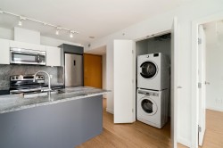 Experience elevated urban living in the heart of Chinatown at 188 Keefer Street, a concrete residence by Westbank. This bright east-facing one bedroom plus den offers a smart, functional layout with an open living and dining area designed for effortless entertaining. The sleek kitchen features stainless steel appliances and granite countertops, while the windowed den is ideal for a stylish work-from-home setup. Geothermal heat, and hot water are included in the strata fees. Home offers in-suite laundry and is accompanied by two storage lockers.Residents enjoy a rooftop BBQ and garden, lounge, gym, and play area. Steps to transit, SkyTrain, Costco, T&T, and some of the city’s best dining and culture. Open Sat Feb 14 and Sun Feb 15 1-3pm
