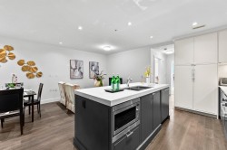 Welcome to Perron, a boutique collection of modern homes on Yukon Street and West 59th Avenue. This bright 1-bedroom corner suite offers an exceptional open layout with full-size Bosch appliances, elegant finishes, and a private landscaped patio with its own entry. Enjoy the perfect balance of nature and city living-steps from Winona Park, close to top Westside schools, SkyTrain, shopping, dining, and recreation. A rare opportunity to own a spacious, well-designed home in one of Vancouver's most desirable neighbourhoods. Please come for your private viewing. Open House: Sat & Sun, Oct 11 &12, 2 pm- 4 pm.
