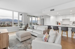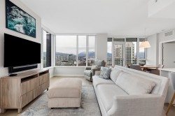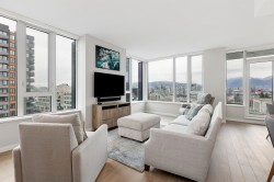 Welcome to THE SPOT - Where luxury meets the ultimate location! This North West facing 3 bedroom, 3 bathroom Plus Den, top floor corner home features spectacular 180 panoramic views of the North Shore Mountains and Vancouver Skyline! With Craftsman inspired finishings throughout, a gourmet kitchen with premium integrated Bosch Appliances, Air Conditioning, Spa-inspired ensuites with double sinks & a soaker tub, California Closets in the primary and pantry and a generous 162 Sq Ft patio, this home is perfect for entertaining, relaxing and everyday enjoyment! Amenities include a concierge, gym and a 10,000 sq ft. rooftop lounge with a garden and playground. This homes Comes w/2 parking spots and 1 storage locker. OPEN HOUSES - THURS FEB 26 1-2:30 / SAT FEB 28th 2-4pm/ SUN MARCH 1 2-4pm