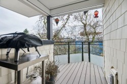 Welcome to the top floor of the 8th Avenue Garden Apartments, featuring a charming peek-a-boo mountain view from the east-facing balcony. This spacious 1-bedroom home offers a contemporary updated kitchen with new flooring, a renovated bathroom, cozy gas fireplace, and in-suite laundry. The well-maintained building has been fully rainscreened with a new roof completed in 2021, along with recent re-piping, new hallway carpets, and fresh paint. Includes two parking stalls, storage locker, and bike room. Prime location close to transit to UBC, shopping, restaurants, and Trout Lake. City sewer upgrades currently in the Nanaimo–East Kamloops neighborhood. Plz park on 7th Ave & walk on the right/west side of Kamloops along the grass to front entrance. Can park on EBroadway on weekends.