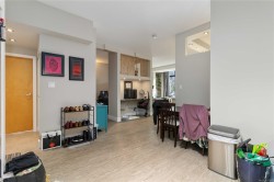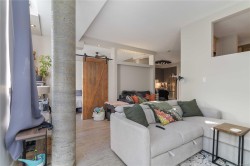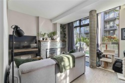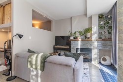 Discover downtown sophistication in the largest unit at Mermaid Wharf! This renovated 1-bedroom + den condo blends industrial charm with modern elegance, featuring stainless steel appliances, a stylish barn door, and fresh paint throughout. Soaring ceilings and oversized, south-facing windows fill the space with natural light, while a cozy gas fireplace adds warmth and character. The versatile den with a Murphy bed is perfect for guests or a home office. Step outside to your private ground-floor patio with direct access to the David Foster Harbour Pathway, offering seamless waterfront access to downtown. Enjoy shared access to the rooftop deck with BBQs and stunning harbour views, ideal for entertaining and relaxing. Just steps from the ocean, cafés, and boutique shopping, this home delivers the best of downtown living.