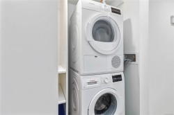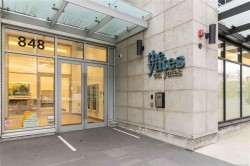 Welcome to Yates on Yates, a quality-built concrete and steel building in the heart of downtown Victoria, close to all your favourite shops, restaurants, and everyday amenities! Vacant and move-in ready, this quiet 12th-floor one-bedroom home features floor-to-ceiling windows that bring in plenty of natural light and offer amazing city views. The kitchen includes integrated Fisher & Paykel appliances, custom cabinetry, and quartz countertops. The open living area leads to a covered, well-sized balcony, ideal for enjoying the city outlook. The bedroom offers a generous walk-in closet, and the bathroom includes heated floors. A heat pump provides efficient heating and cooling year-round while keeping energy bills down. Additional features include in-suite laundry, and residents also enjoy a common garden areas, lounge space, secure bike storage, a pet wash station, and a rooftop patio with BBQs! The perfect option for those looking to enjoy convenient downtown living.