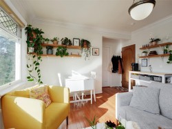 Charming character conversion suite in a beautiful 1909 home tastefully restored into 7 unique suites in 1996. This is a delightful 1 bedroom,1 bathroom sun filled, corner unit where light pours in from 3 sides to create a bright and breezy ambience. With lovely outlooks from all rooms, features include cozy gas fireplace in the living room, open plan kitchen with stainless steel appliances, fir floors throughout, stained glass windows and crown mouldings. Laundry is shared with one other unit plus there's a parking stall, separate storage locker and bike storage. This is a small, pet friendly complex rich in period details that is set on a tranquil, tree-lined street, perfect for cyclists, that is in one of Victoria's most desirable locations where you are just a short stroll to quaint Cook Street Village, Dallas Road beaches, Beacon Hill Park's gardens and the city's picturesque and vibrant Downtown.