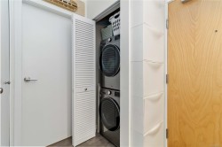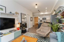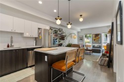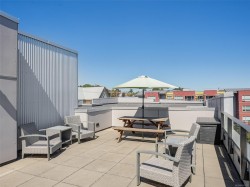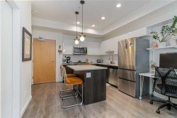 Welcome to this bright ground-floor condo at the Horizon in the Railyards, offering a rare 425sqft private patio! This award-winning contemporary building is set in a vibrant waterfront community that blends natural beauty with urban convenience. The fully rentable and pet-friendly suite features a modern kitchen with stainless steel appliances and quartz countertops, opening into a sunlit living and dining space with southwest-facing windows. Everyday comforts include in-unit laundry, a designated parking stall, separate storage, bike storage, and paddle board/kayak storage in building. Residents also enjoy access to a rooftop patio with sweeping city and waterway views. Just steps outside your door you can walk, kayak, or cycle downtown in minutes, or explore the parks and shops right across the street. With the Galloping Goose Trail, Selkirk Trestle, and Gorge waterway at your doorstep, this home is perfect for those seeking both an active lifestyle and a connected urban experience.