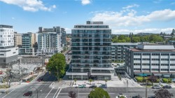 Welcome to Nest by Chard, a 2024 built 1 bed, 1 bath home in Victoria’s vibrant Harris Green neighbourhood. This 3rd floor unit offers an open-concept layout with large windows for abundant natural light and a spacious 400 sq/ft balcony with city views! The chef-inspired kitchen features sleek European cabinetry, solid quartz countertops and backsplash, and a fully integrated Fisher & Paykel appliance package. The bathroom includes a deep soaker tub, heated floors, and terrazzo-inspired porcelain tiles. Enjoy year-round comfort with in-suite A/C and a continuous fresh air supply system. Thoughtful touches like large entry storage, in-suite laundry and slim roller blinds add convenience. Building amenities include car and e-bike share programs, a fitness facility, dog wash station, children's play area, and secured bike locker and storage. Just steps to restaurants, cafes, shopping, entertainment, parks and beaches with a 94 walk score—perfect for urban professionals.