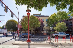 LIVE THE DOWNTOWN LIFESTYLE AT “THE VOGUE” Where heritage charm meets modern convenience.This 2006 heritage conversion set in the heart of Old Town Victoria truly has it all.2 bd, 2 bth, 2 level penthouse loft blends contemporary design with striking old-growth timbers, creating one-of-a-kind living experience.Main living is open concept with impressive 21 ft ceilings & cozy gas F/P.The stylish kit features lots of cupboard space, stone c/tops, S/S appl, gas range & secret pantry!4 pce bth with cheater to 2nd bd overlooking the old buildings.Spacious balcony with gas hook up, perfect for entertaining, enjoy views towards the bridge & distant Sooke Hills.Upper level offers huge primary open loft style bd with lovely views, build-in wardrobes & 3 pce bth.Bring your furry friends, u/ground parking, bike & storage locker, fab common rooftop deck!This sought-after building is within the historic d/town core for Fan Tan Alley, Market Square, shopping/dining/entertainment!Car-less lifestyle!