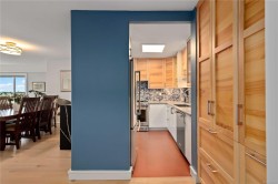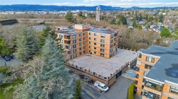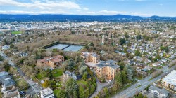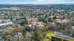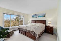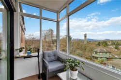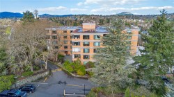 Welcome to charming Spencer Castle! This top-floor residence boasts breathtaking views of the city & mountains. Recently renovated, it features soft-close millwork, stainless steel appliances, & sleek countertops in a vibrant new kitchen. Enjoy beautiful oak flooring, luxurious 100% wool carpets, & new energy-efficient windows throughout. The spacious open layout seamlessly connects the kitchen, living, & dining areas, perfect for entertaining. The primary suite includes a generous walk-in closet & an updated 4-piece ensuite. Additional highlights include a modern guest bath & a versatile solid mahogany wallbed for added convenience. Relax in the enclosed balcony while soaking in the views, or take a leisurely stroll to renowned Summit Park, where waterfowl & birdlife thrive. Centrally located, this gem is just minutes from downtown, dining, & Victoria's attractions. The well-maintained steel & concrete building offers secure parking, indoor pool, sauna & beautifully landscaped grounds