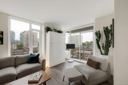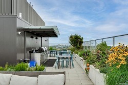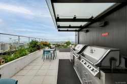 Discover the energy of downtown Victoria living! Perfect for the first time buyer or a retiree lock and leave home, this bright, contemporary 2-bedroom, 1-bath condo features over 780 sq ft of thoughtfully designed space and includes your personally owned parking stall. Soak in beautiful city and mountain views from the sunny south-east exposure, or unwind on your private balcony just off the living room. The modern kitchen impresses with quartz countertops, stainless-steel appliances, washer and dryer and sleek luxury vinyl plank flooring throughout. Enjoy the added convenience of EV charging, secure underground parking, a bike room, and a storage locker. Take advantage of the rooftop terrace with BBQ area, dog run, and community garden, ideal for embracing the urban lifestyle. Just steps to an array of dining spots, plenty of shopping, transit including Harbour Air and Victoria Clipper. Includes remaining 2-5-10 warranty. Measurements are approximate.
