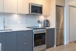 This like-new, top-floor modern unit is filled with natural light, over-height ceilings and a smart, efficient layout that creates a comfortable living space. Luxury vinyl plank flooring offering a seamless look and easy care. The stylish kitchen boasts ample cabinetry, while the in-suite laundry includes extra storage. A spacious 4pc bathroom, excellent lighting, and white blackout window coverings. Enjoy access to a car & e-bike-share program, plus thoughtful amenities. Dog lovers, there is a on-site pet run and wash station. There’s also an outdoor children’s play area and a meeting/media room. Ideally located on Upper Johnson, you’re within easy walking distance to the Fernwood and Rockland neighborhood's, close to downtown Victoria’s vibrant events and attractions, and just south of beautiful Beacon Hill Park. With two excellent grocery stores nearby, you can comfortably leave the car at home. Presented in show-suite condition, this home is move-in ready and sure to impress.