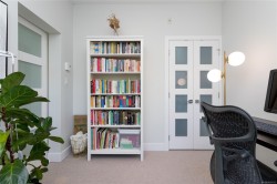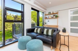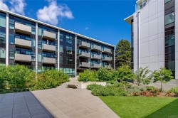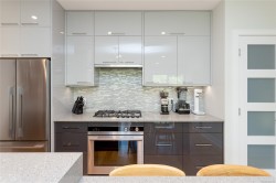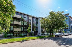 Welcome to The Wade—a sophisticated, 2021-built low-rise steel and concrete building that combines modern design with lasting quality. This top-floor corner unit offers over 750 sqft. of bright, thoughtfully designed living space with large windows & serene park views. Open-concept layout features a gourmet kitchen with quartz countertops, stainless steel appliances including a gas cooktop, two toned full-height modern cabinetry & large island with an eating bar—perfect for entertaining. Primary bedroom includes walk-in closet and ensuite with heated tile floor. Additional highlights include in-suite laundry, second full bathroom with heated tile floors, private balcony with a gas BBQ hookup and abundant natural light throughout. Enjoy access to a stunning rooftop terrace with sweeping city views plus your own garden plot and private peaceful courtyard. Well run strata welcomes 2 dogs (any size) with access to secure underground parking, separate storage locker & bike room.