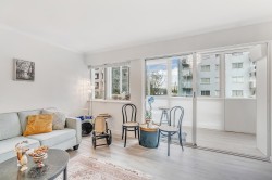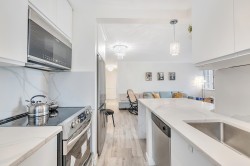 Enjoy all the amenities this great location has to offer with this completely renovated (in 2023), southwest-facing, 1,081 sq ft corner suite featuring 3 bedrooms and 2 bathrooms. Enter through an elegant foyer with a built-in closet and storage area, complete with a Miele washer and dryer. The sun-filled living room connects to a kitchen equipped with brand-new appliances, featuring a white countertop and breakfast bar. Relax on the large, private, covered balcony. The beautifully appointed roof deck offers stunning ocean and city views. This gorgeous suite is just steps away from all of Ambleside's restaurants, shops, top-ranked schools, and amenities. Enjoy an amazing lifestyle in West Vancouver! Pets and Rental are allowed with restrictions.