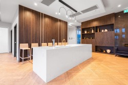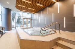 Breathtaking Views in West Vancouver. Enjoy panoramic views of the North Shore Mountains, ocean, and Lions Gate Bridge from this stunning 1-bedroom, 1-bathroom west-facing home in The Sentinel. Designed for luxury living, this immaculate unit features a spacious balcony, soaring 9-ft ceilings, floor-to-ceiling windows, and A/C for year-round comfort. The gourmet kitchen is perfect for entertaining, with a sleek island, high-end AEG appliances, a gas range, and quartz countertops and backsplash. Residents enjoy resort-style amenities, including a concierge, party lounge, fitness center, sauna, steam room, hot tub, yoga studio, outdoor lounge, and three guest suites. Owner-occupied and in excellent condition!