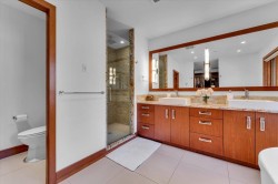 Located on a quiet cul-de-sac, the property offers unmatched privacy. From this elevated vantage point, the world below disappears, replaced by sweeping ocean and city vistas that shimmer by day and sparkle by night.Step inside to discover a living experience that blends luxury with warmth. Limestone floors with radiant heat lead through luminous spaces, while handcrafted stonework and rich wood-framed windows showcase true craftsmanship. Multiple rooms open onto expansive, interconnected balconies, creating a stunning indoor/outdoor flow. Throw open the doors and let coastal breezes drift through the home, or host sunset gatherings as the skyline comes to life.The great room transitions effortlessly to an oversized covered terrace — ideal for year-round living.