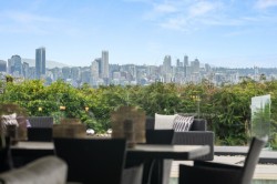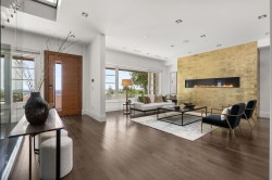 Perfectly perched above the coastline with fast access to Hwy 1, this modern 7,500+ sq ft West Vancouver estate delivers sweeping ocean views from Lions Gate Bridge to UBC and Vancouver Island. Completed in 2020, it offers a chef's kitchen with Miele appliances, a full spice kitchen with Wolf range, granite island, built-in coffee station, Control4 smart system, AC, radiant infloor heating, and an elevator. Outdoor living shines with expansive decks, a sleek pool, and low-maintenance landscaping. The home includes up to 7 bedrooms and 8 bathrooms, a spa-inspired primary suite, gym, sauna, steam room, wine room, legal suite, and a media lounge with movie room and games area, creating an exceptional place to call home.