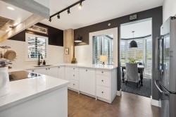Luxe, light-filled, and completely reimagined - this 2 bed + solarium, 2 bath NW corner suite at The Westroyal blends sophistication with everyday comfort. Expansive windows fill the home with natural light and frame stunning ocean, mountain, and city views. Thoughtfully redesigned in 2021 with over 1500 sq ft of indoor/outdoor living, this home features your own private garden oasis deck, a sleek chef’s kitchen, spa-inspired bathrooms, custom millwork and closets, quartz counters, designer lighting, a cozy gas fireplace and elegant shutters throughout. Resort-style amenities include a pool, hot tub, sauna, gym, party room, and resident manager. Includes 2 parking stalls and storage. Steps to the seawall, Park Royal Shopping Centre, dining, and transit.
