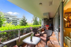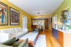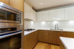 Sophisticated West Vancouver Living - Evelyn by Onni. This stunning 2 bedroom + den, air-conditioned home offers over 1,160 sq ft of beautifully designed interior space with engineered hardwood flooring, and floor-to-ceiling windows. The master suite offers walk-through closets and a luxurious en-suite with a double vanity and NuHeat radiant flooring. Gourmet chef's kitchen equipped with Sub-Zero fridge, Miele gas cooktop, convections wall oven and custom flat-panel cabinetry. Large den perfect for a home office or guest room, a spacious outdoor terrace can be a nice extra space with specially floored. Excellent facilities: Gym, Concierge, Lounge, Guest Rooms. 1 parking & 1 locker included. Central location, walking distance to Park Royal Mall, seawalls, & close to transit.
