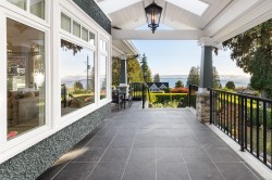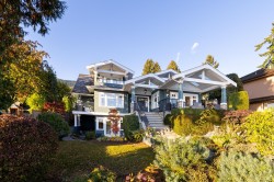 Nestled on a beautifully landscaped 7,800sqft lot in the heart of Dundarave, this 4 bed/5 bath custom built home combines timeless charm w/ modern comfort. Main lvl features a bright, open concept design w/ a gourmet kitchen, formal living & dining areas, a custom bar & a warm family room that opens onto a covered veranda w/ an outdoor fireplace perfect for year round enjoyment. High quality finishes include hardwood floors, granite counters, detailed millwork, premium appliances & custom storage in the laundry room. Upstairs offers 3 spacious beds including a primary suite w/ a luxurious ensuite, walk-in closet & a balcony showcasing stunning ocean views. Lower lvl includes a large recreation area & potential 1 bed garden suite w/ its own patio & separate entry.