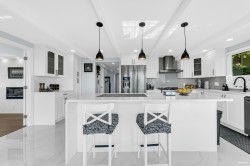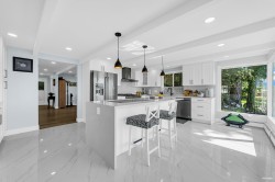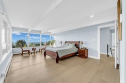 Experience breathtaking panoramic ocean and city views from this private estate, perfectly situated at the end of a quiet cul-de-sac. This completely renovated, custom built Lewis Post & Beam home is designed to maximize natural light with expansive windows on both levels framing unobstructed views. The main level features a grand formal living and dining room, kitchen, spacious recreation room, and executive style office. Upstairs boasts an exceptionally large family room and four well proportioned bedrooms for ideal family living. A private entry space with full kitchen offers potential as a self contained studio, while a fully separate one bedroom suite serves as a valuable mortgage helper. Plenty of parkings. Close to prestigious Collingwood School.