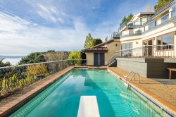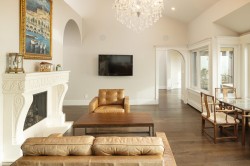 Experience timeless Spanish-style elegance in this stunning 4,475 sqft. home with sweeping ocean views. Curved archways, hardwood floors, soaring ceilings, skylights, & a dramatic fireplace create a warm, sophisticated ambiance. The gourmet kitchen features stone countertops, Miele appliances & separate eating area, flowing seamlessly to the spacious living & dining areas. Above offers 2 en-suited bedrooms while the primary retreat on the lower level offers a private spa-inspired en-suite, wine room & rec room. Outside, enjoy a resort-style pool set within mature, lush landscaping, & triple garage—a perfect blend of character, comfort & coastal living. Steps to West Bay beach, bus route & set within the prestigious West Bay Elementary catchment, Mulgrave & Collingwood Schools.