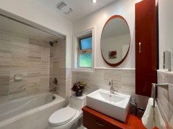 Very well kept, Updated, Nested in 1/3 acre well fenced land in quiet Upper Bayridge offers good size for big family and children-friendly yard and peek-a-boo ocean views from upstairs. It had an extensive remodel in 2009 and this year. The home receives good sunshine the whole day and the main floor offers a newer custom kitchen with built-in cabinetry and eating area, foyer with curved staircase, hardwood floor living, formal dining and family room toward the sundrenched patio, deck, backyard. Upstairs offer 5 good size bright bedrms incl a master & spa-like ensuite. It has 2-car garage & lush gardens. You will love this stunning family home which close to top ranked West Bay ES & Rockridge SS.