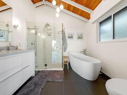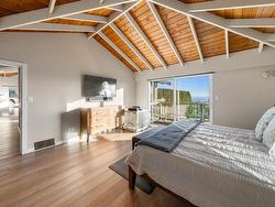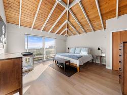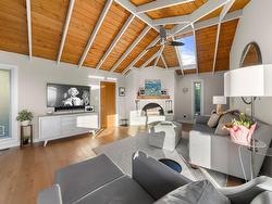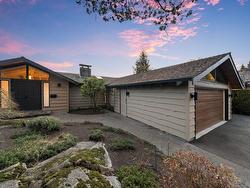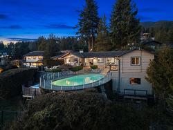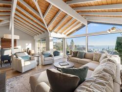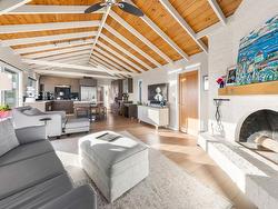 INVESTORS ALERT! Experience West Coast modern living at its finest in this meticulously crafted, fully renovated Bob Lewis post-and-beam rancher, offering just under 2,100 sq.ft. of seamless single-level living on a sprawling, nearly 2/3-acre landscaped lot with a flat driveway. The open-concept design showcases soaring ceilings, panoramic views, and a split layout: a private primary suite with spa-inspired ensuite anchors one wing, while two additional bedrooms occupy the opposite side for ideal family or guest separation. Step outside to your private oasis: a heated pool, sun-drenched patio, and lush landscaped grounds perfect for entertaining or quiet relaxation. Blending architectural distinction with indoor-outdoor harmony, this home delivers luxury, privacy.