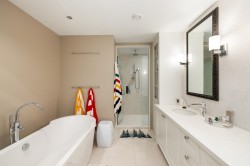 Designed by award-winning architect Frits De Vries, this world class waterfront residence offers breathtaking ocean views & unparalleled West Coast lifestyle in an exclusive gated community! Step inside to a bright, open living space that flows seamlessly to a sun-drenched terrace w/ direct beach access. Upstairs, every bed boasts unobstructed ocean views creating unmatched tranquility, plus spectacular primary w/ cozy f/p, spa-like ensuite & private terrace. A signature limestone feature wall descends to a recreation lvl opening to a private courtyard patio. Enjoy automated lights & blinds system, in-floor heating & access to the complex's pool/hot tub. Nestled onto Batchelor Bay, this home is a sanctuary for those who cherish exceptional architecture & waterfront living. O H Sat/Sun 12-4