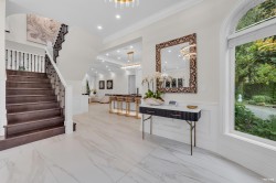 Experience refined luxury & modern elegance in this beautifully crafted residence. Main level features Italian-imported marble flooring, Open concept kitchen showcases striking central island, Miele & Gaggenau appliances, fully equipped wok kitchen. Upstairs 4 spacious bedrms, including a lavish primary suite w/ spa-inspired ensuite, huge walk-in-closet & a heated sunroom. Additional highlights include custom LED lighting, waterfall landscaping, mountain view gazebo, 4 fireplaces, A/C, radiant heating, EV charging etc. The entertainment area features private entrance, providing excellent suite potential for rental/guests. This home perfectly blends modern luxury w/ thoughtful functionality. Located near top-ranked public schools, Park Royal shopping centre & all essential amenities.