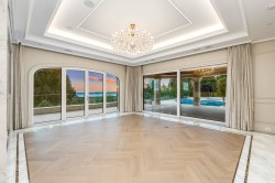 British Properties Estate newly completed, this house situated on a prestigious street, private, views of city & harbour and Lions Gate Bridge. This 12,967 sq ft 2 level home built on a 24,746 square feet level lot. Open floor Plan, gourmet kitchen, 6 oversized ensuited bedrooms w/walk-ins, 11 baths, high ceilings, elevator, Over sized indoor and outdoor swimming pools, sauna, steam room, large level heated driveway, water feature, and 5-car parking, fire pit, park like landscaping designed by Paul Sangha and upscale home theatre! Handmade floors are Calacatta marble with wood inlay and/or metal inlay. Gourmet chef’s kitchen featuring Gaggenau appliances and wok kitchen. This home truly beyond impressive.