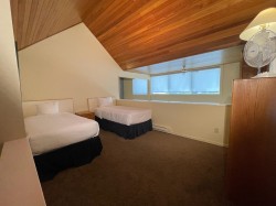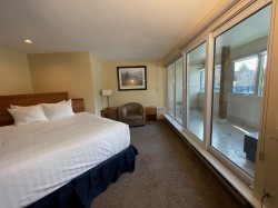This large 6 sleeper in Wk 50 is the BEST! The spirit of the Christmas season is in the air, just one week before Christmas. Christmas lights are at the height of their beauty throughout the village. Typically it is one of the best ski weeks with lots of winter weather but very few people are in town. They can be busy shopping, you can be busy skiing every day and skiing right onto the lift. This condominium is in the centre of town and is fully equipped with 1350+ ft2, large enough for any family vacation. Three separate levels, twins in the loft, Queen pull out on the main and a king size bed with its own private hot tub on a private deck. No need to bring a car, while you do have a parking spot, just hop on the bus from Vancouver for less than a tank of gas and walk 45 ft to the condo.