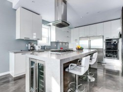 Unobstructed Ocean views from all levels. This exceptional residence is ideally positioned just steps from White Rock Pier and the vibrant restaurants and boutiques of West Beach.The top floor is entirely dedicated to the luxurious primary suite, featuring a spa-inspired five-piece ensuite and complete separation from the additional bedrooms — offering ultimate privacy. Designed for modern coastal living, the open-concept kitchen and living area flow seamlessly for effortless entertaining. Premium features include European tilt-and-turn windows, polished acid-washed concrete floors, quartz countertops, gas cooktop, double ovens, bar fridge, and air conditioning. A dramatic media room with a soaring 14-foot ceiling. Double garage with lane access, wired for electric charging station.