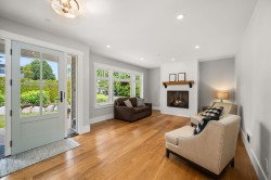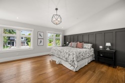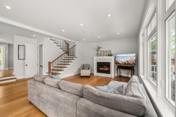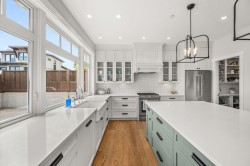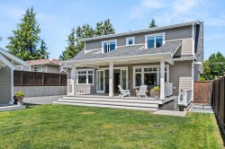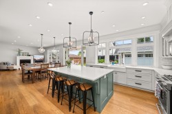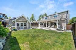 Coastal charm in this custom-built White Rock beach home by Keith Penner. Thoughtfully crafted with a rare cross-hall living layout that just feels right. Main floor includes a cozy living room with oversized gas fireplace overlooking the manicured front yard. The bright south-facing kitchen and family room has oversized windows that flood the space with natural light. French doors open to a covered back deck with built-in heaters for year-round enjoyment. A luscious backyard garden completes the setting. Pull up to standout street appeal and an inviting presence, aided by the detached garage. 3 spacious bedrooms upstairs, including a serene primary suite. The unfinished basement with separate entry offers endless potential. Ideal for a young family or couple seeking luxury and lifestyle.